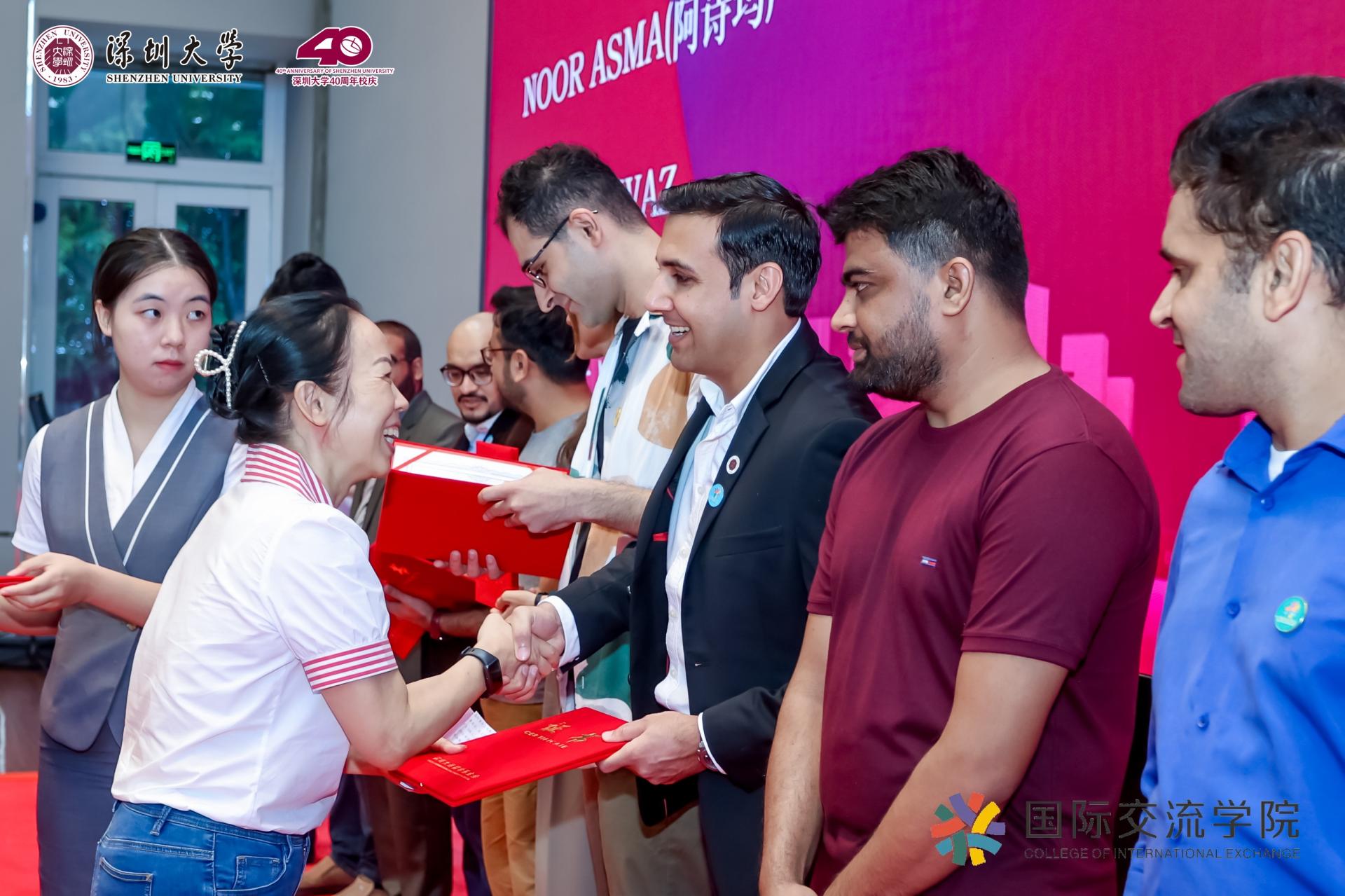 校友會揭牌儀式結束后,校慶晚會正式拉開帷幕。本次晚會特別設立深圳市大運留學基金會2023年資助學生證書頒發環節。今年,我校共有31名外籍留學生通過嚴格評審,憑借優異的成績獲得了各項大運獎學金的資助。深圳大運留學基金會副秘書長陸林現場為獲獎學生頒發獎學金證書,并寄語深大學子在新的征程中,繼續保持勤奮、求知的態度,勇敢地追逐自己的夢想,書寫更加精彩的人生篇章。