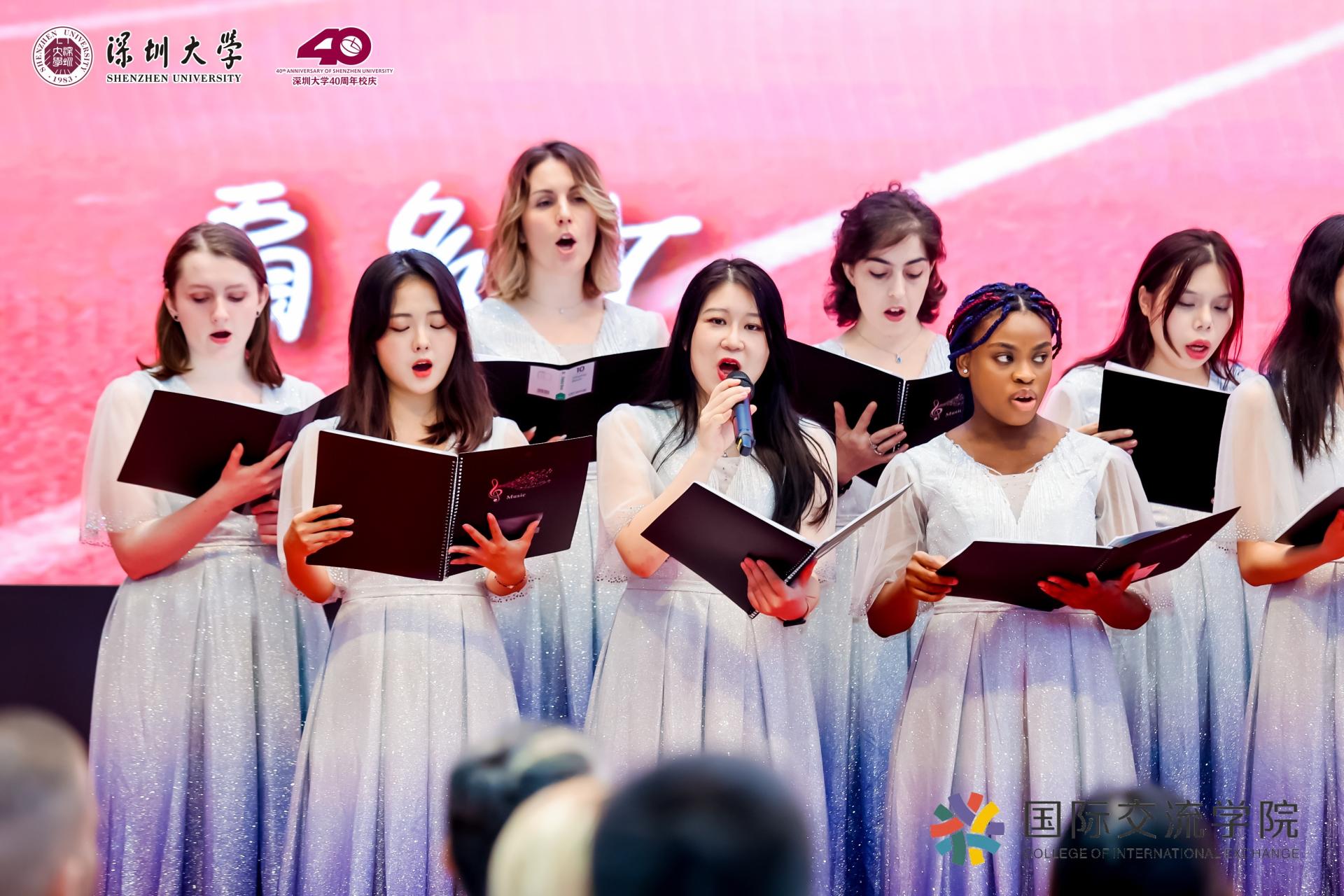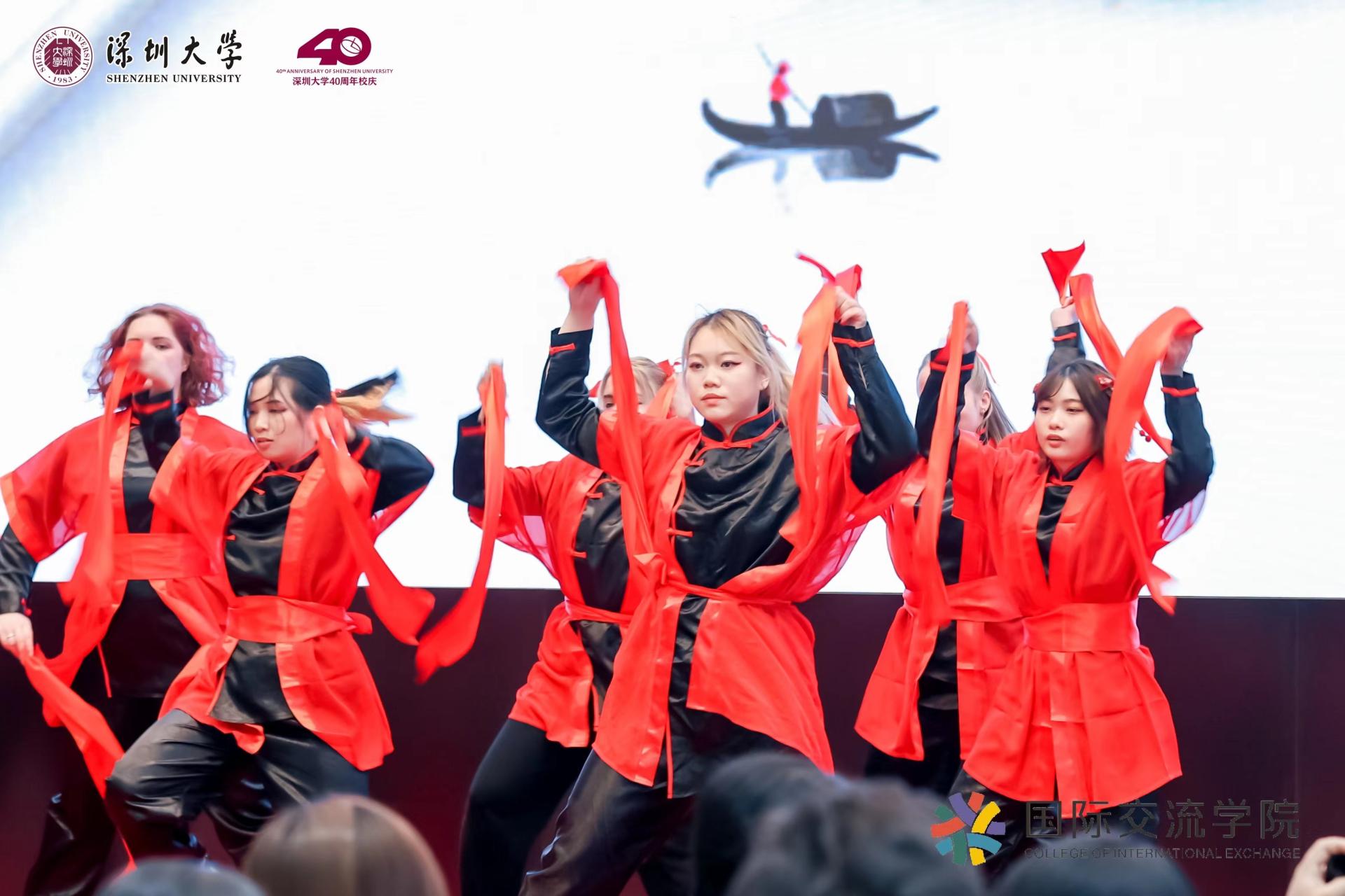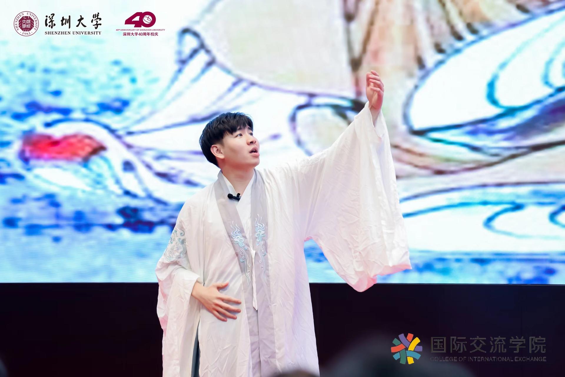 勁歌熱舞之后,來自摩洛哥的Sbai Imane(伊曼)用柔美的聲線將歌曲《Butterfly Fly Away》中溫暖的歌詞娓娓道來,配合吉他琴弦撥動,治愈人心。由GSC舞團帶來的舞蹈表演《畫卷》,將滿滿的中式元素融入到舞蹈之中,勾勒出一幅幅美麗的抒情畫卷。最后,深圳大學國際合唱團帶來獻禮深圳大學40周年校慶的合唱作品《南海之帆》,旋律優美、歌詞深情,表達了對母校的深沉熱愛和對未來的無限期許。
