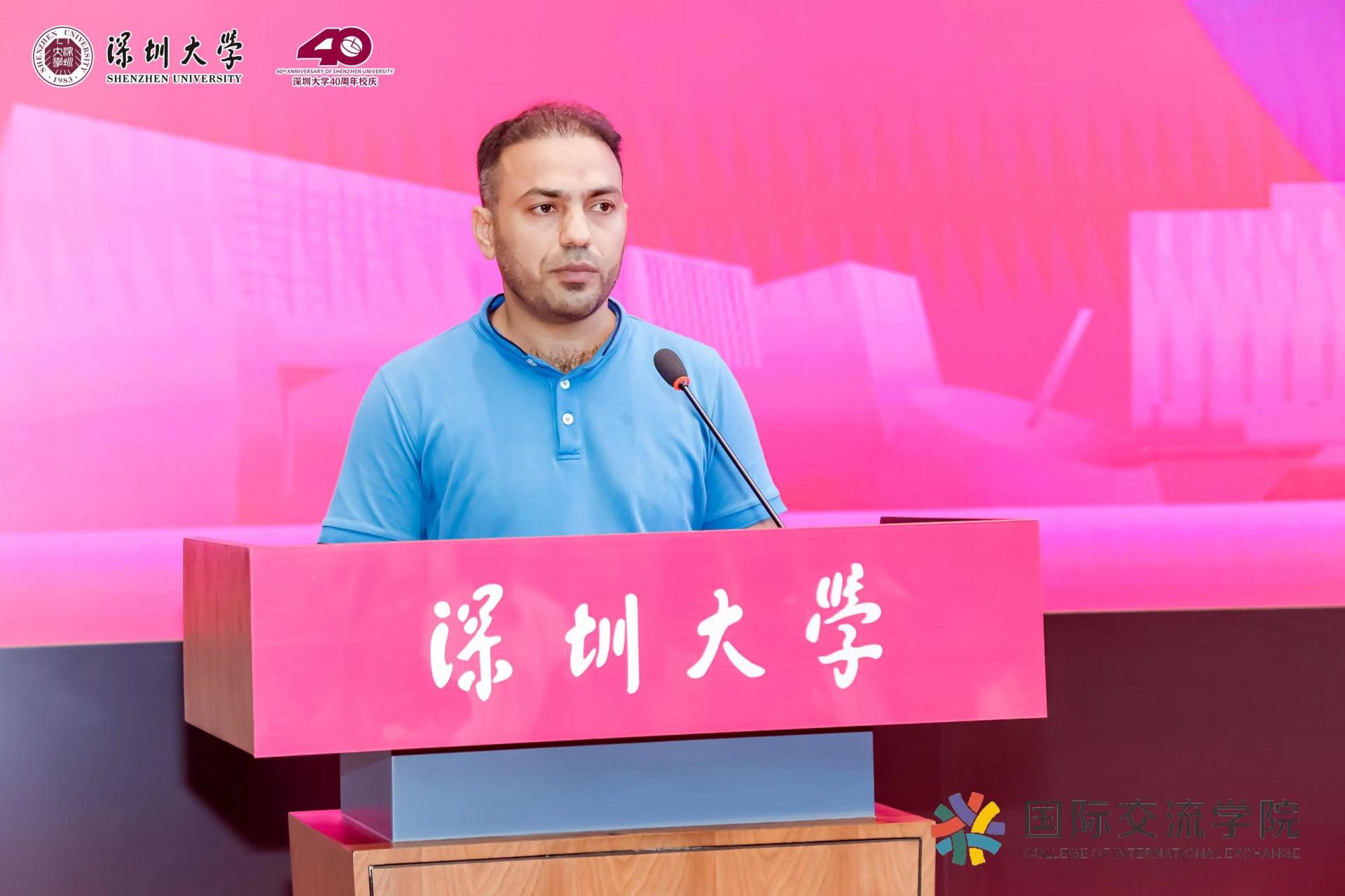 來自巴基斯坦的2015屆物理與光電工程學院光學工程專業畢業生Saddam Aziz(沙頓)作為國際學生校友代表發言。他對母校40周年校慶表示熱烈的祝賀,并對母校的栽培和恩師的教誨表示誠摯的感謝。他表示,在深圳大學度過的美好青春時光已經在大家的人生中打下了深深的烙印,如今看到母校的發展建設及取得的成績深感振奮和自豪。國際學生校友會的成立將更好地凝聚國際學生校友的力量,助推母校和校友們的事業共同發展。