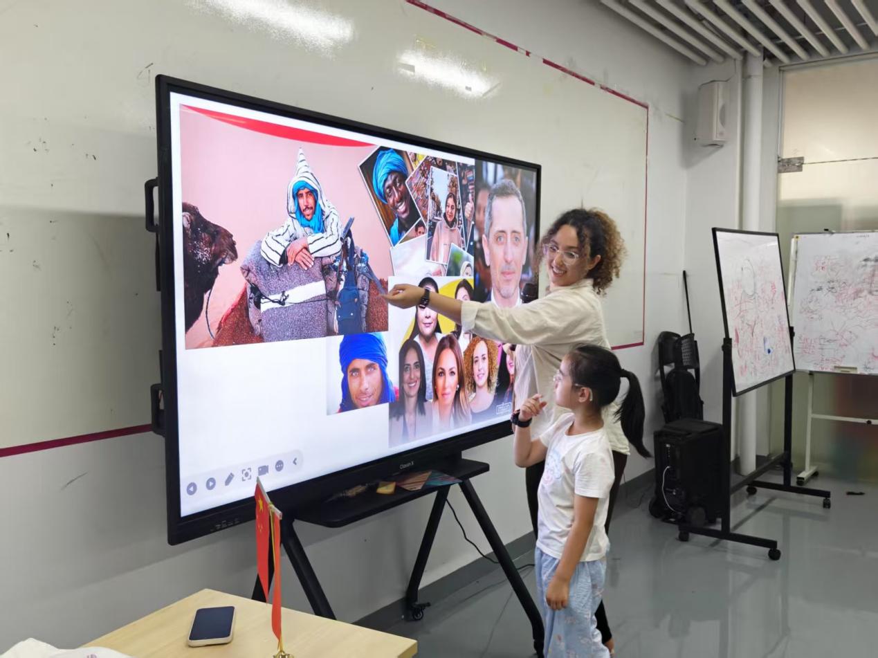 伊朗留學生索菲亞(EBRAHIMI MOHADDESEH)展示了這個古老文明的瑰寶。一個精彩的波斯故事引人入勝,隨即孩子們沉浸在絢麗的幾何圖案繪畫中。靈動的波斯舞蹈教學更是將氣氛推向高潮,孩子們扭動腰肢,感受著絲路另一端的韻律節(jié)奏。