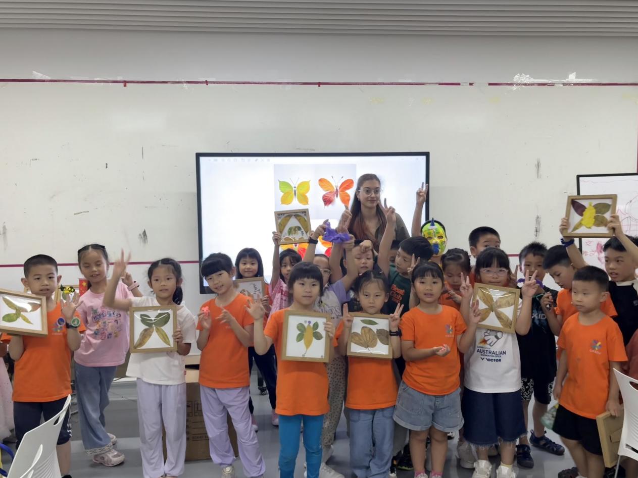 芭蕾舞體驗的優(yōu)雅未散,樹葉蝴蝶制作又讓自然與藝術相遇。指尖翻飛間,雪國的靈動躍然紙上。俄羅斯留學生麗莎(MANUSHINA ELIZAVETA)帶著小朋友們活動和創(chuàng)作中感受俄羅斯的魅力。