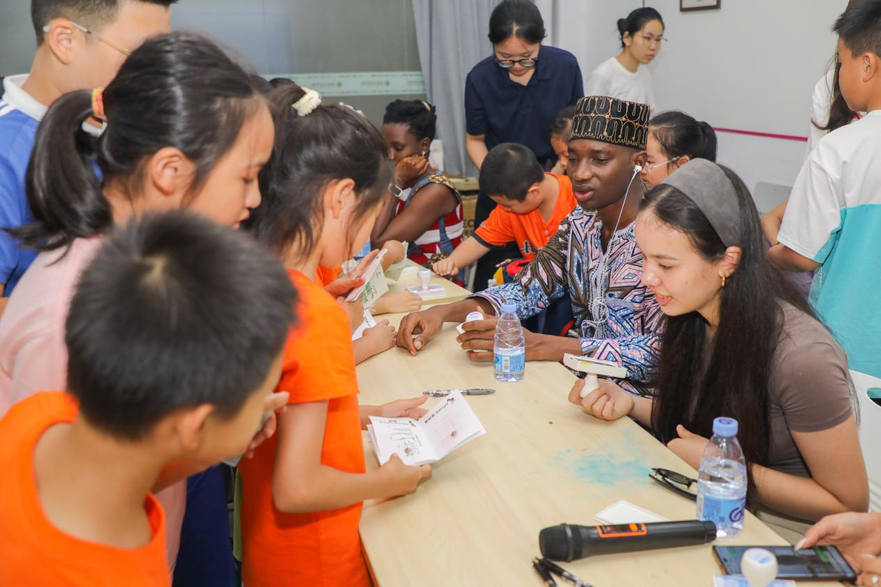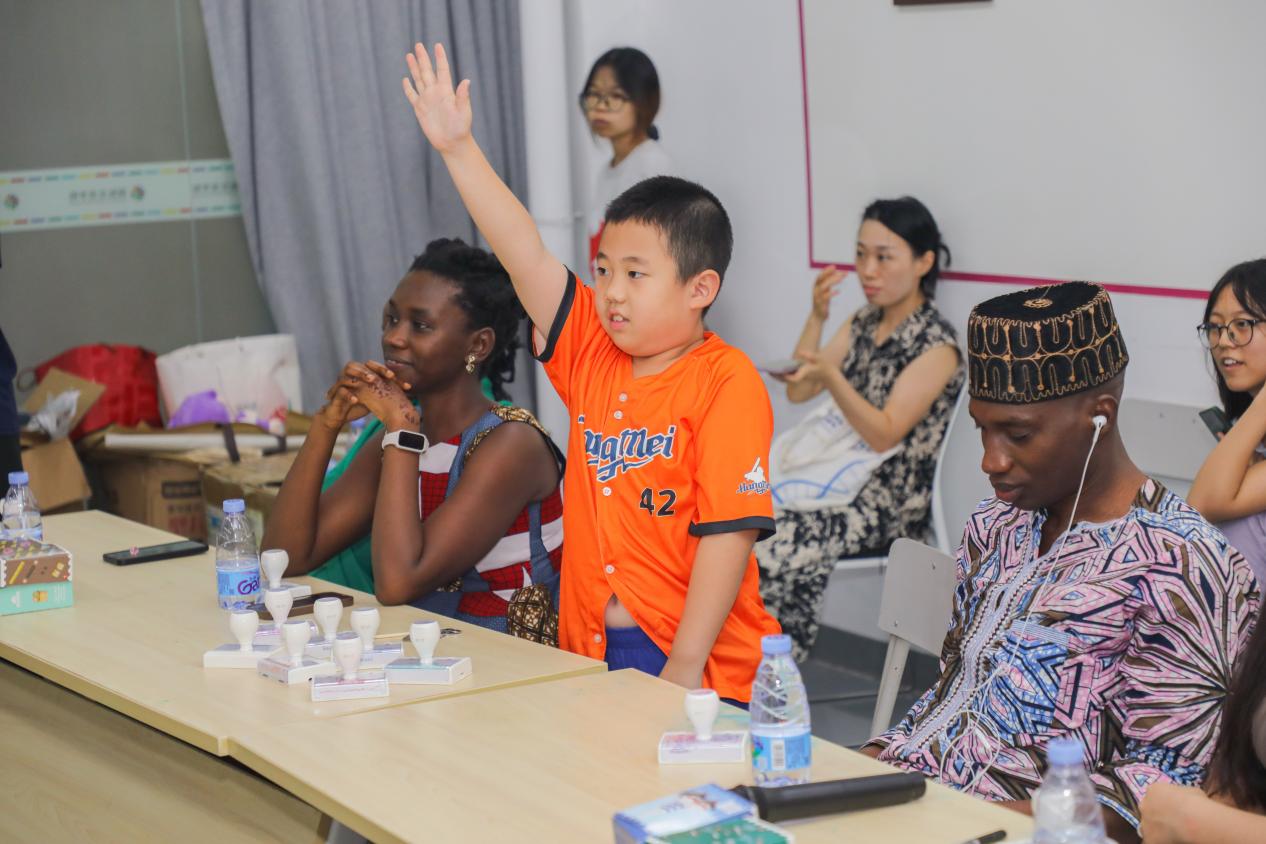閉營儀式上,所有留學生齊聚一堂,孩子們可以自由穿梭其間,用稚嫩但充滿熱情的中英文提出他們心中無數(shù)個“為什么”。問風俗、聊美食、說節(jié)日……這場零距離的“圓桌交流會”充滿了童言童語的妙趣和真誠的互動,瞬間消融了國籍與語言的隔閡。留學生們耐心解答,分享著個人故事,這一刻,“人類命運共同體”在童真的目光中找到了最溫暖的注腳。