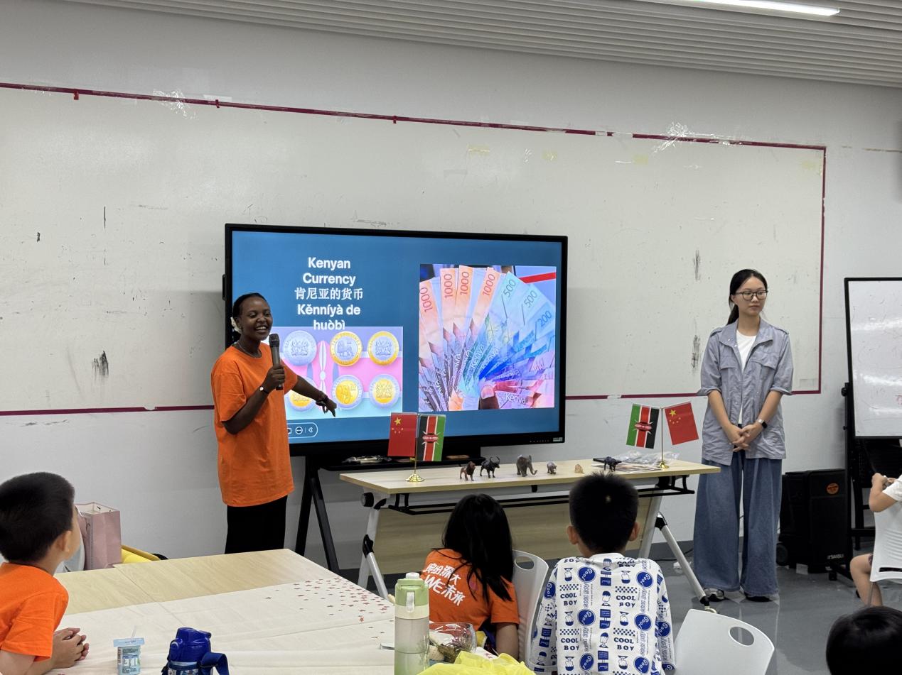 肯尼亞留學生林冉(NYAWIRA EVALYNE NJERI)帶來的是一場視覺與知識的盛宴。非洲大草原上威風凜凜的獅子、溫順的長頸鹿、憨態(tài)可掬的大象……高清圖片和生動的講解,讓孩子們仿佛置身于馬賽馬拉。驚嘆聲此起彼伏,對自然和生命的敬畏油然而生。