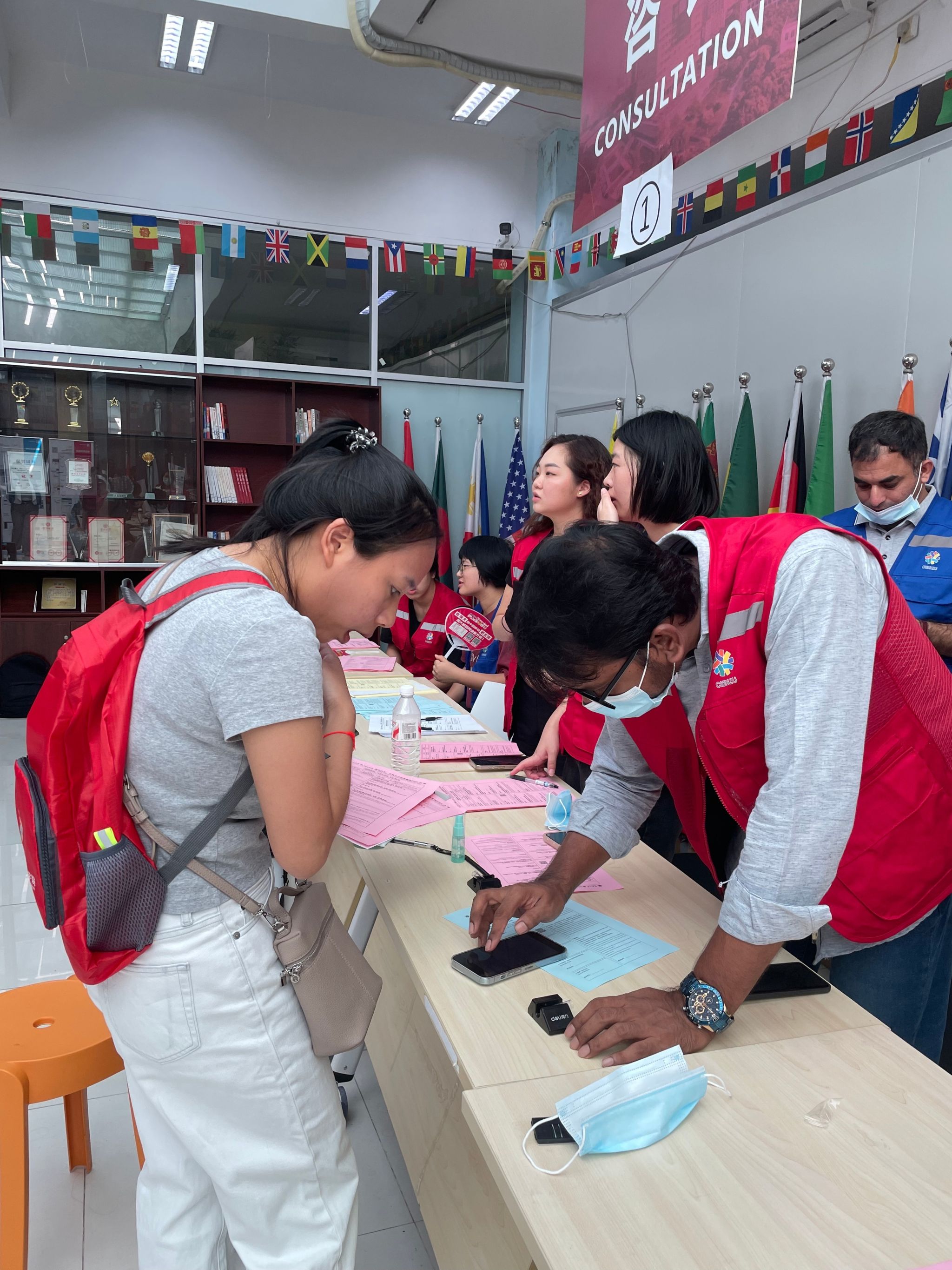 為確保秋季學期迎新工作高效有序,學院提前召開專題會議,統(tǒng)籌部署相關工作,細化職責分工,優(yōu)化報到流程。在報到現場,學院為留學生提供涵蓋信息更新、保險辦理、住宿申請、學費繳納、簽證材料審核、選課等環(huán)節(jié)的“一站式”服務。同時,學院組織了留學生志愿者團隊提供全程引導與協(xié)助?,F場特別設置了咨詢臺,由學院師生為新生答疑解惑,協(xié)助完成材料核驗與信息錄入,有效保障了手續(xù)辦理的順暢高效。整個報到現場秩序井然,氛圍友好熱烈。